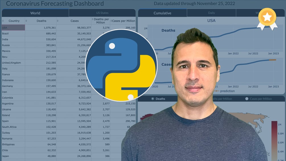 Master Data Analysis with Python is written by Ted Petrou, author of the highly rated text Pandas Cookbook. Ted has taught data science in-person using Python to hundreds of students and sees first hand exactly where students struggle. He has continually upgraded his material to minimize these struggles by providing simple and direct paths forward.